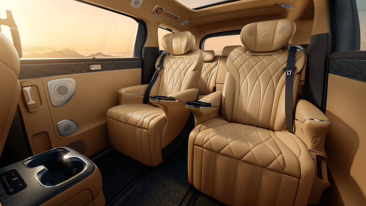 步入车内,新车内饰采用全新的设计语言,以百万级的豪华标准,将豪华体验提升至全新维度。标配怀挡重塑前排奢阔格局。NAPPA真皮座椅搭配精致绗缝工艺,触感细腻,共同营造出旗舰级的尊崇氛围。