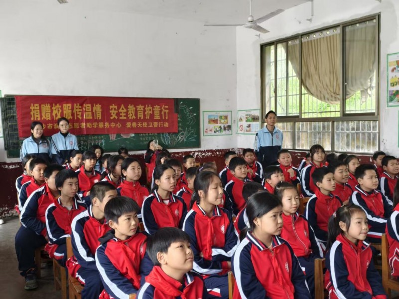此次活动源于长沙市润物志愿者助学服务中心对乡村教育的十年坚守,经实地调研发现,杉山学校以留守儿童为主,因家庭经济条件差异,全校学生从未统一穿着校服,孩子们渴望融入集体的心愿迫切。长沙市润物志愿者助学服务中心携手爱善天使“卫蕾行动”共同开展帮扶,为学校捐赠学生校服53套、教师工作服10套,圆孩子们的校服梦,让乡村学子在统一着装中感受集体归属感与校园温暖。除物资帮扶之外,爱善天使“卫蕾行动”还在现场开展公益讲座,以精神守护补足物资帮扶,让乡村儿童既收获整洁统一的校服,更筑牢自我保护的安全防线。