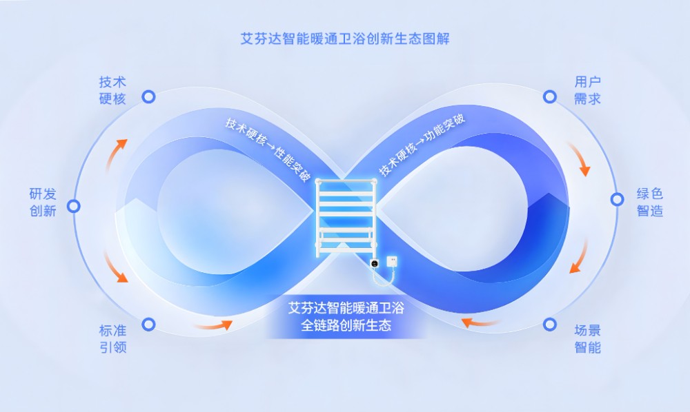 当一台电热毛巾架被不断赋予精准温控、智能联动、高效抑菌、低碳节能等多层面价值的创新突破,其背后承载的,早已不止是单一产品的技术迭代,而是艾芬达深耕暖通卫浴领域二十余载,构建起的“技术-智造-场景-标准”全链路创新生态。作为国家级制造业单项冠军,艾芬达以电热毛巾架为核心载体,将创新渗透至产业全链路,打破单品竞争的局限,构建起基于硬核技术实力不断延伸的创新生态发展格局,引领行业从“单品制造”向“生态赋能”转型。