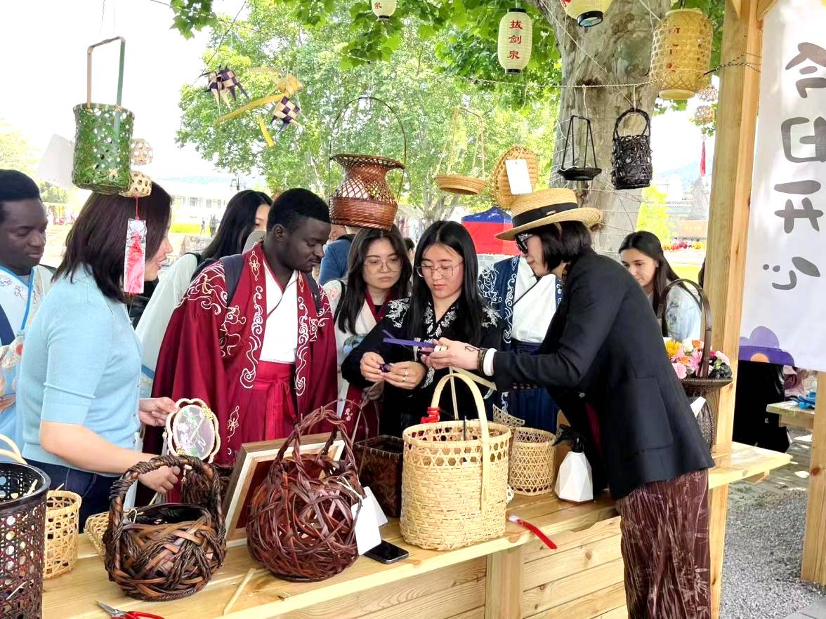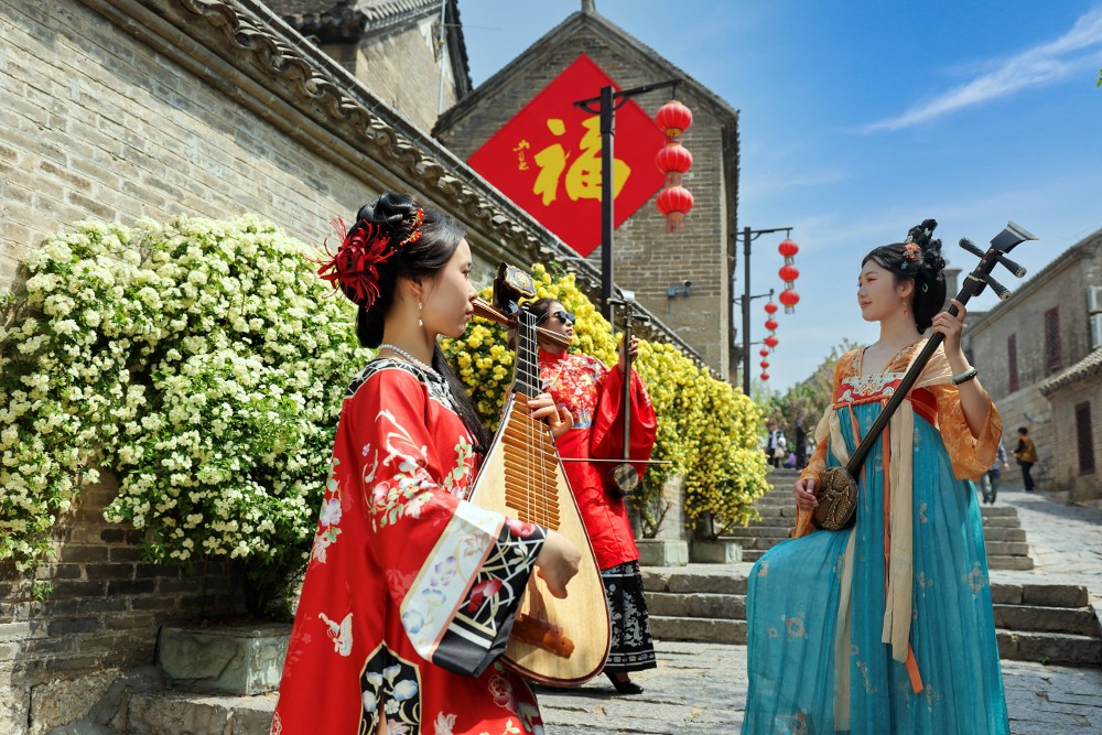 阵地不只在馆内,更延伸到了城市的不同场域。2025年,泉山区组织非遗传承人开展“六进”活动——进校园、进机关、进社区、进军营、进乡村、进景区,全年超过3000场次,约40位非遗传承人参与其中。今年3月的“花开十里,杏好有你”活动期间,云龙山百花广场上,汉服快闪、非遗民乐演奏轮番登场,游客们边走边看,仿佛穿越回了大汉盛世。