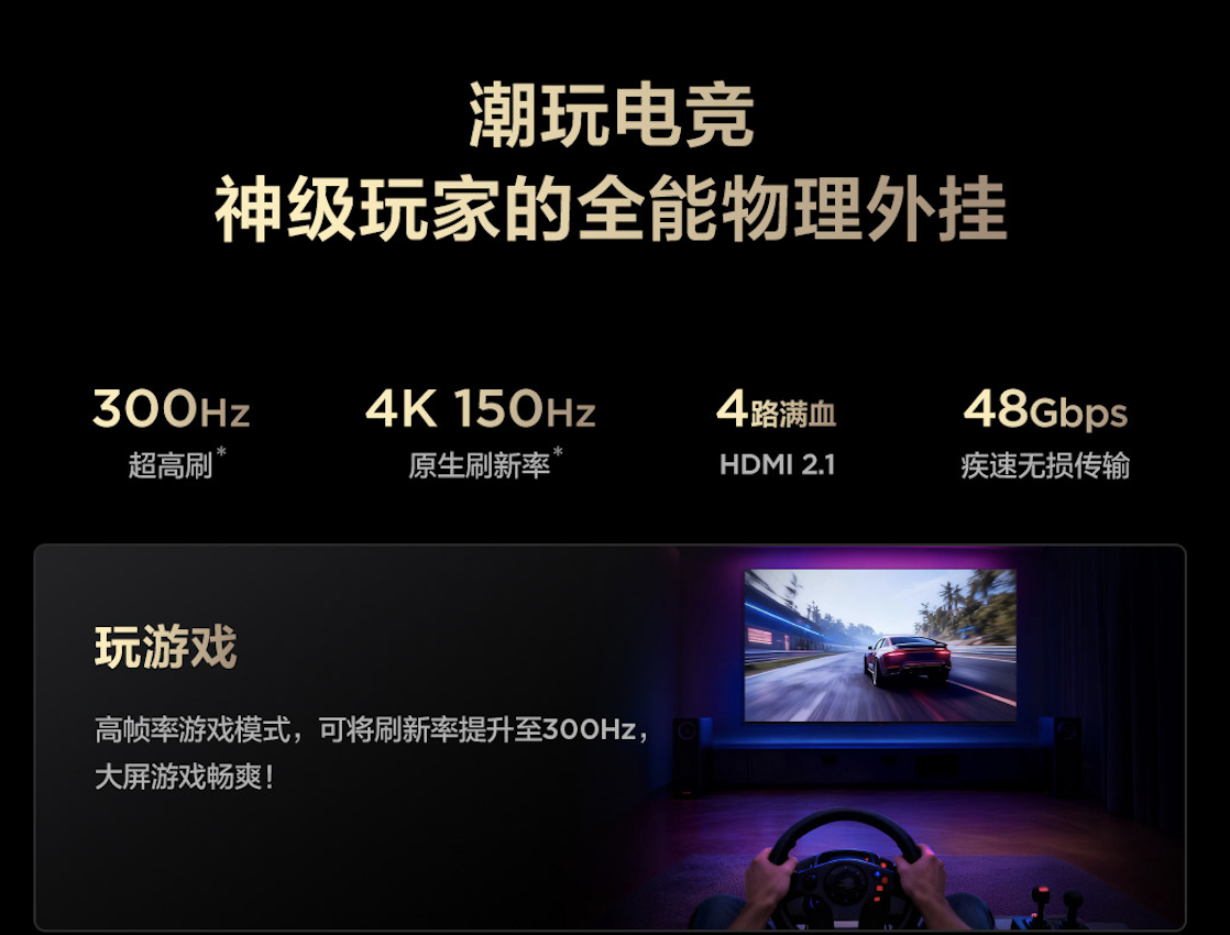 更实用的是,T7M Ultra将原本需要额外购买多台设备才能实现的功能全部整合。它配备了四个满血HDMI 2.1接口,PS5、Xbox、Switch、4K机顶盒甚至VR眼镜可以同时接入。再也不用繁琐地拔插线材,也省去了购买HDMI切换器或外置回音壁的额外开销。