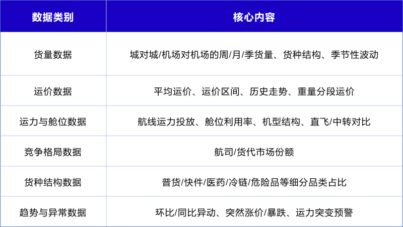 所有数据均以周度频率更新,其数据源融合了IATA独有的CASS(货运结算系统)、CDD(货运信息直接数据)及NDD(新数据交付),汇集来自全球30,000+家货运代理和300+家航空公司的匿名化交易记录,涵盖80,000+个城市间贸易通道及140,000+个机场间贸易通道,包含超过2,000万张航空主运单信息,涉及运费总额高达3,200亿美元。