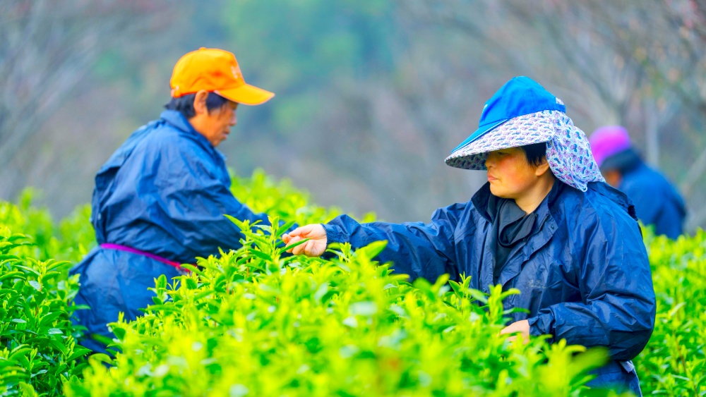 开采首日,千亩茶园绿意盎然,数百名采茶工腰挎茶篓,穿梭于茶垄间,指尖轻捻、提采翻飞,精准采摘符合标准的一芽一叶鲜叶。“我们只采长度2.8-3厘米的一芽一叶,芽头匀整、无病虫、无破损,这是保证天目云露品质的第一道关。”葛联敏说,企业严格执行采摘标准,日均可采优质鲜叶数千斤,预计采摘周期约8天。