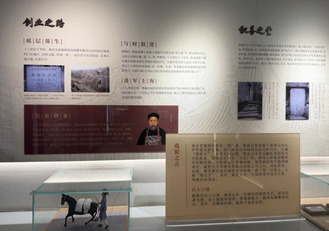 故居里的展陈介绍,他们以盐业起家,后涉足缎业、房地产,富甲一方。但真正让这座宅院穿越百年依旧熠熠生辉的,并非财富本身,而是他们“公益为人生分内事”“安本分学吃亏”的家训。据悉,在发家之后,他们捐资修桥铺路、修建下水道、赈济灾民、兴办学堂,其宅旁小巷被赐名“积善里”,宅院大厅悬匾“积善堂”。