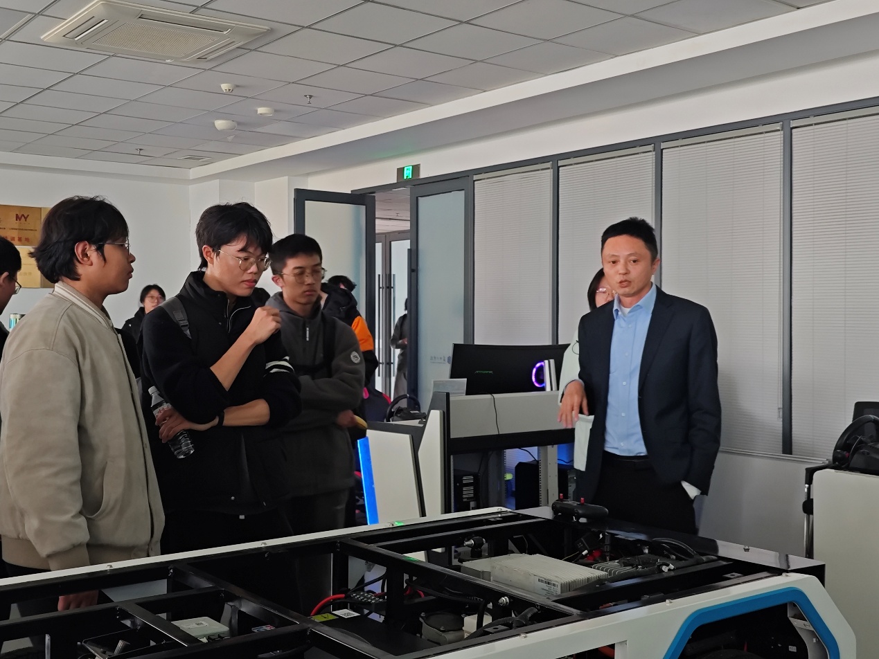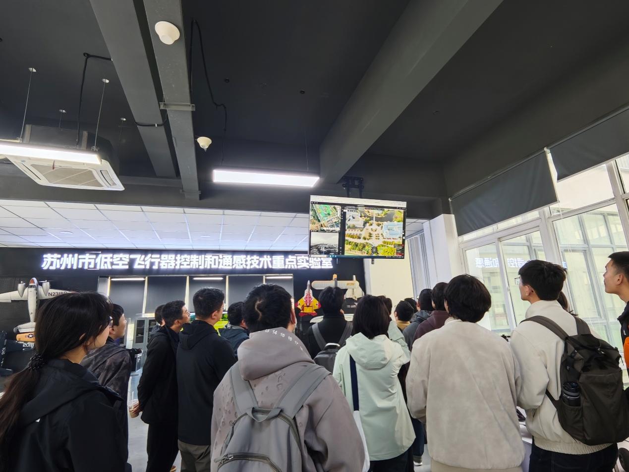 座谈结束后,为推动精神传承与科技实践深度融合,破解思政教育“知信行”脱节的难题,两校师生代表共同前往苏州市低空飞行器控制和通感技术重点实验室、安鹿智能科技有限公司开展沉浸式科技研学。在重点实验室,师生们认真聆听无人机研发、飞行控制等核心技术讲解,近距离观摩设备样机,探寻技术攻关历程,感受新一代信息技术赋能低空产业的创新活力;在安鹿智能科技有限公司,师生们深入了解无人驾驶车辆研发体系、核心算法及实际应用场景,直观见证科研成果从实验室走向产业落地的转化过程,真切体会科技创新对国家发展的重要意义,进一步激发了投身科研、勇攀高峰的奋斗热情。