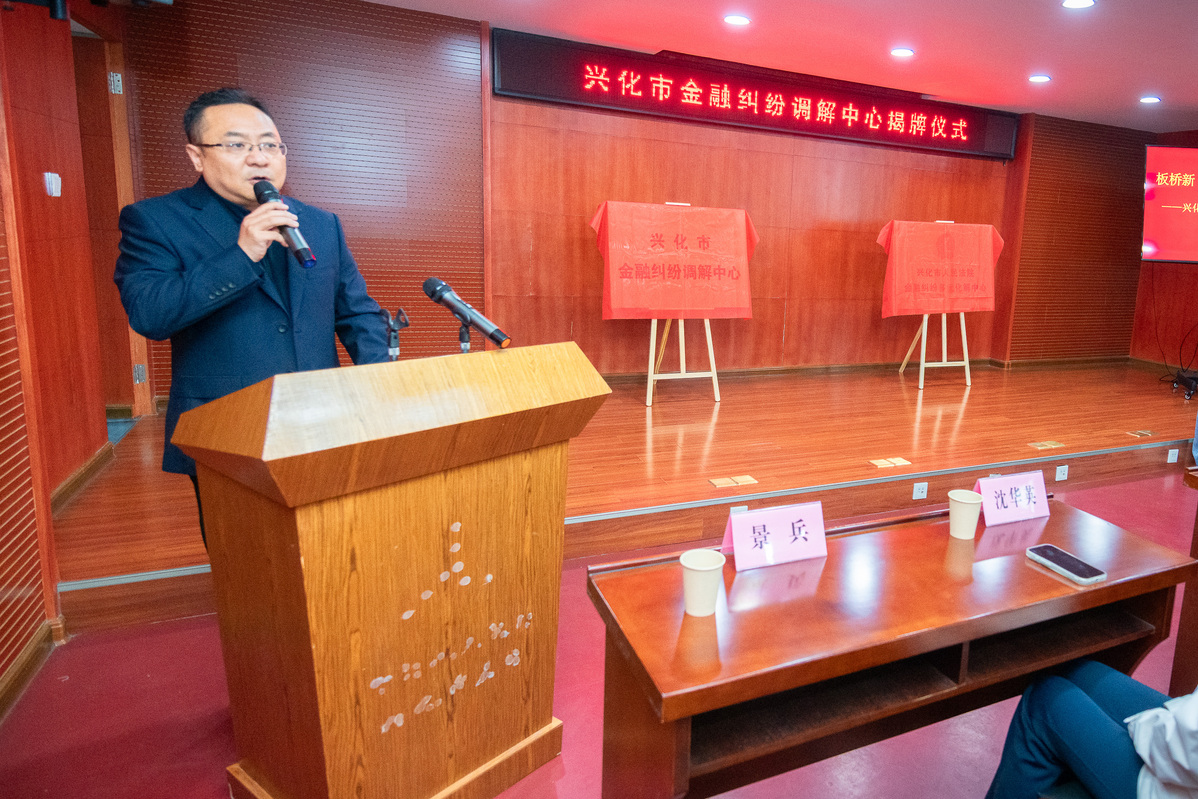 揭牌仪式上,兴化市副市长李彬在致辞中表示,要坚守“预防为先、调解靠前”工作导向,推动金融矛盾纠纷化解在基层、消解在萌芽状态,积极培育“有纠纷、先调解”的社会共识,以高调解成功率、高协议履行率赢得群众信任,全力打造独具兴化特色的金融纠纷调解品牌。