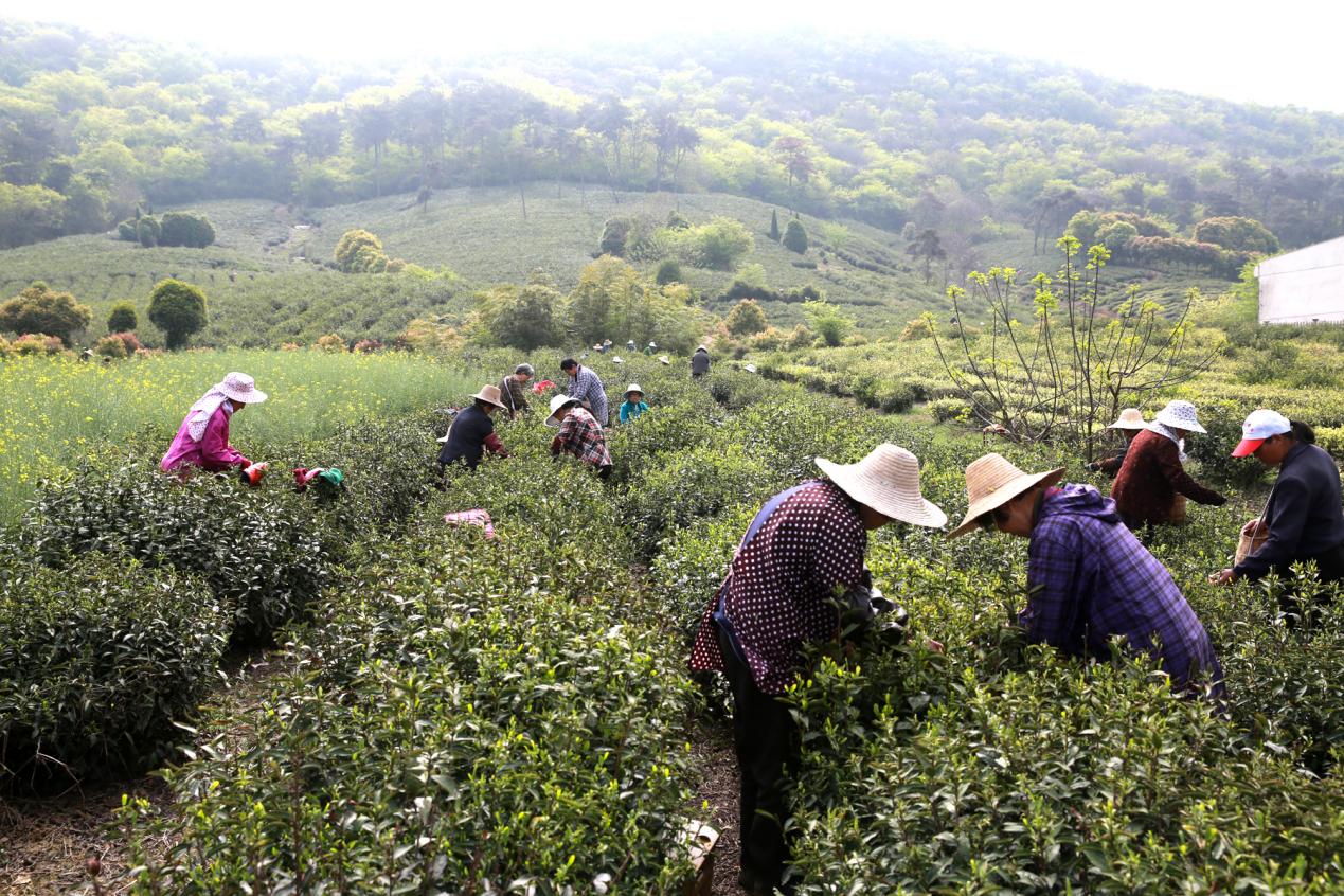 花山村地处固城湖畔、花山脚下,这里水汽充沛、云雾缭绕、土壤疏松肥沃,得天独厚的自然条件十分适宜茶叶生长。近年来,该村因地制宜,将茶叶产业作为富民强村的主导产业大力发展。花山田家茶叶种植专业合作社与中国茶叶研究院、江苏农林职业技术学院建立长期产学研合作,依托高淳区农村改革试点试验项目,建设智慧茶园、茶叶加工中心,引进智慧农业管理平台,配套水肥一体化设施,推行绿色防控技术,全面提升茶园建设标准与生态景观效果。目前,全村茶叶种植面积(含农户自种)已达800余亩。