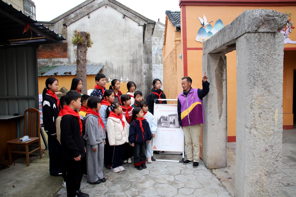 红色寻访,旧址忆初心,该村新时代文明实践站志愿者芮渊带着孩子们来到赵村祠堂(新四军第五兵站旧址),现场讲解新四军第五兵站的革命历史,讲述烽火岁月中的感人故事。结合永宁村村史,引导孩子们感悟革命先辈的坚定信仰与无畏精神。