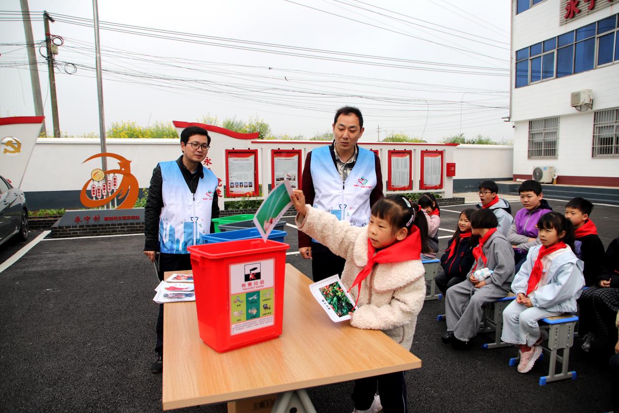 据了解,在永宁村新时代文明实践站文化广场,为普及环保理念,引导孩子们动手实践,街道蓝精灵垃圾分类志愿者通过分类小桶讲解、分类卡片投放等方式进行宣讲,引导孩子们从小学习垃圾分类知识,增强垃圾分类意识。“小朋友们,这四个分类小桶分别是蓝色的可回收物、红色的有害垃圾、绿色的厨余垃圾以及灰色的其他垃圾,这就是我们生活中常见的几类垃圾……”活动中,志愿者借助四个分类小桶,一边给孩子们讲解垃圾分类的知识,一边教他们如何进行区分。孩子们都纷纷表示,回家后要把学到的分类知识告诉家里的大人们,在家中的日常生活中,共同做好垃圾分类。