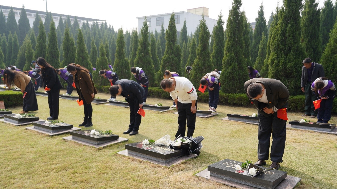 苍松翠柏环绕之中,碾庄圩战斗纪念碑巍然矗立。全体师生整齐列队,肃立碑前,敬献花篮,向英勇牺牲的革命先烈默哀致敬。在百米碑林,师生们驻足凝视烈士英名,献上鲜花,追思先烈们的坚定信仰与牺牲精神。