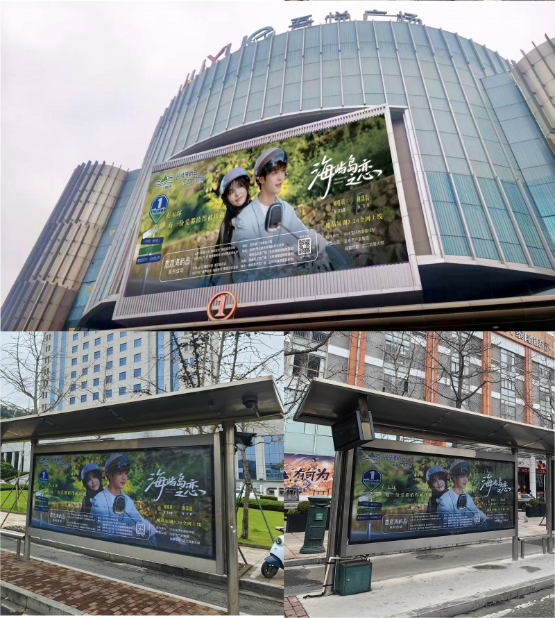剧集上线后,在海内外多平台传播热度持续攀升,凭借“文旅+言情”的内容特色实现多维度传播落地。上线首周,剧集海内外总曝光量超1亿,并登上微博台州同城热搜榜第3名。海外发行端,剧集完成17种语言译制,覆盖全球超200个国家和地区;台州市主干道、玉环市主城区56个公交站台,多个投影大屏同步发布上线海报,实现线上热度向本地场景的深度渗透。