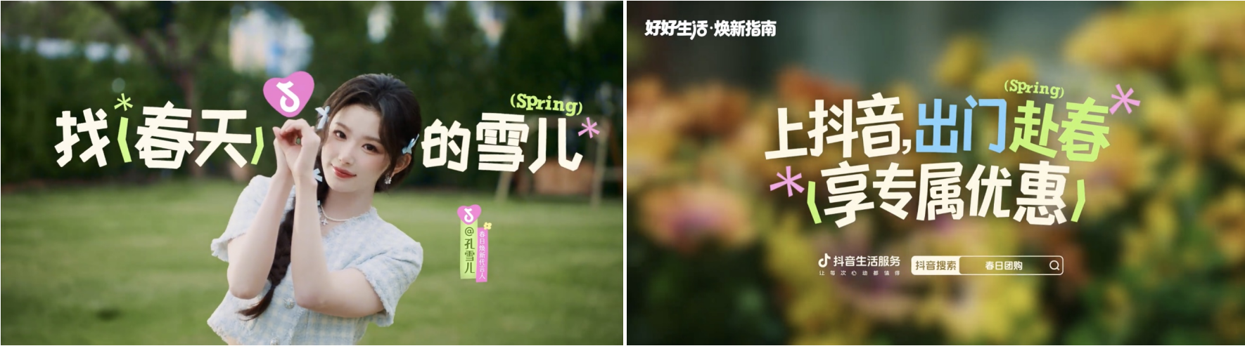 循着代言人的春日足迹,抖音生活服务将这份春日灵感落地为六大场景清单,搭配平台专属团购优惠,让每一份对美好的向往都能轻松实现,不用费心比价,一键畅享春日小确幸。