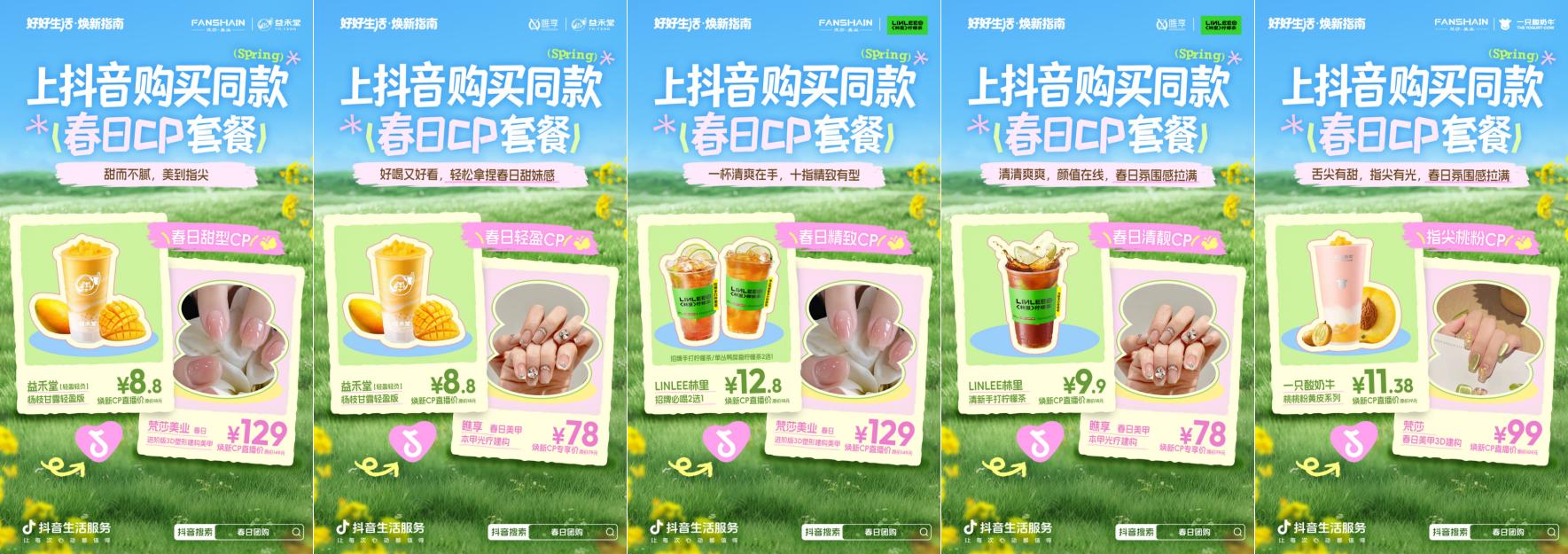 针对春日消费中不可或缺的仪式感需求 ,抖音生活服务将不同的春日生活场景结合起来,推出「春日CP组合」,聚焦人气最高的“丽人变美”和“轻餐饮品”两大场景,把美甲等变美项目,和清爽鲜果茶、酸奶等春日饮品巧妙搭配,让变美的过程更惬意,让焕新的仪式感更完整。CP套餐可享平台专属优惠,用户无需费心搭配,跟着买即可享受变美与尝鲜双重体验。组合消费上线便收获用户喜爱,大批用户线上团券后,自发分享到店体验,生活博主、颜值达人纷纷打卡种草。“春日CP焕新”迅速成为春日潮流,为合作品牌实现跨品类引流。