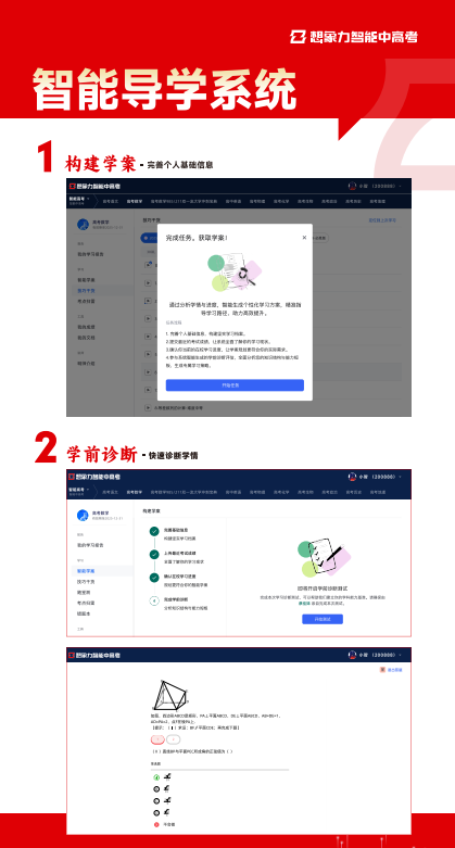 中高考竞争日趋激烈,传统备考模式中“盲目刷题、低效内耗、痛点模糊”等问题,成为阻碍学子冲刺高分的核心瓶颈。想象力智能中高考打造行业首创“智能测评+智能报告+智能学习方案”为一体的智能导学系统,构筑技术领先 + 服务闭环的双重竞争力,打造差异化品牌优势,牢牢占据中高考智能提分赛道制高点。