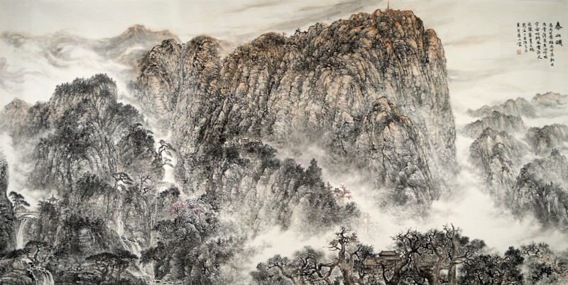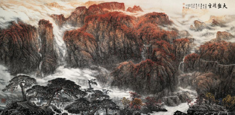其笔下山水融北派的沉雄博大与南派的秀润华滋,打破了近现代画坛被秀丽柔美山水画主导的局面,让雄浑深沉、正气浩然的艺术气质与国家形象、民族精神同辉,也让这些作品成为国家盛典的背景墙,成为向世界展示中国气派的一张文化名片。