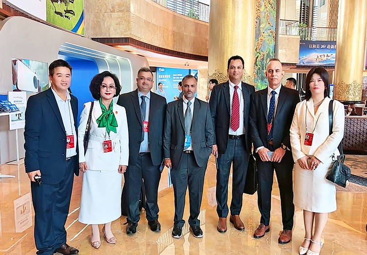 深圳造梦空间人工智能董事长闫燕燕、北京清青恒美技术研究院总经理马彩青、上海麒健科技董事长刘洋与博鳌亚洲论坛秘书长政策顾问、巴基斯坦总理中国事务特别代表扎法尔,中国美国商会会长何迈可,以及巴基斯坦驻华使馆官员等在一起交流并合影留念