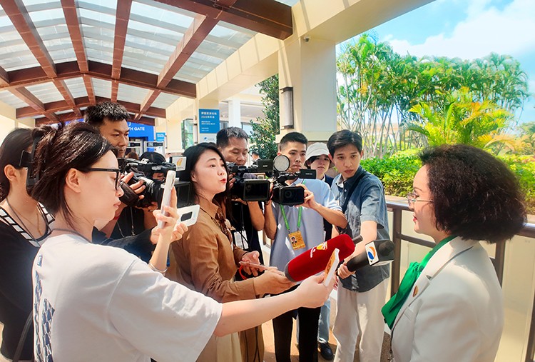 中国公益事业形象大使、北京清青恒美技术研究院总经理马彩青在活动现场接受媒体采访