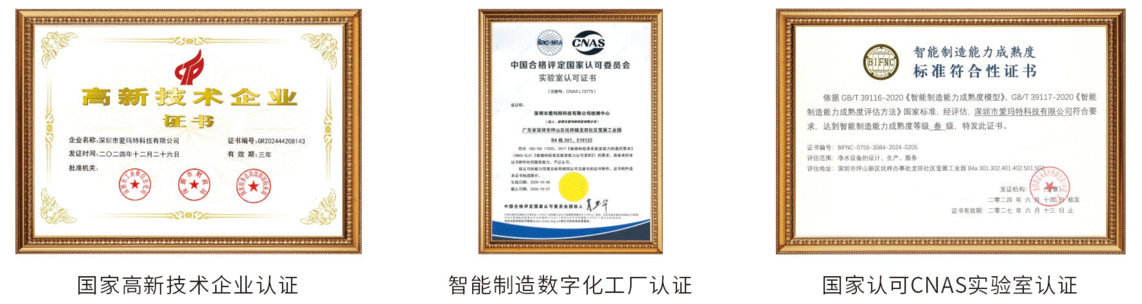 爱玛特是国家高新技术企业,多项净水行业国家标准起草单位,深度参与行业规范制定,技术路线引领行业方向。累计拥有多项国家发明专利,包括SMPSS 多片螺旋滤网、液控自排污 UV 杀菌、CNFNF 纳滤等核心技术,针对中国水质优化,过滤精度、运行稳定性、维护便捷性行业领先。强大技术背书让代理商讲解更专业、用户信任度更高。