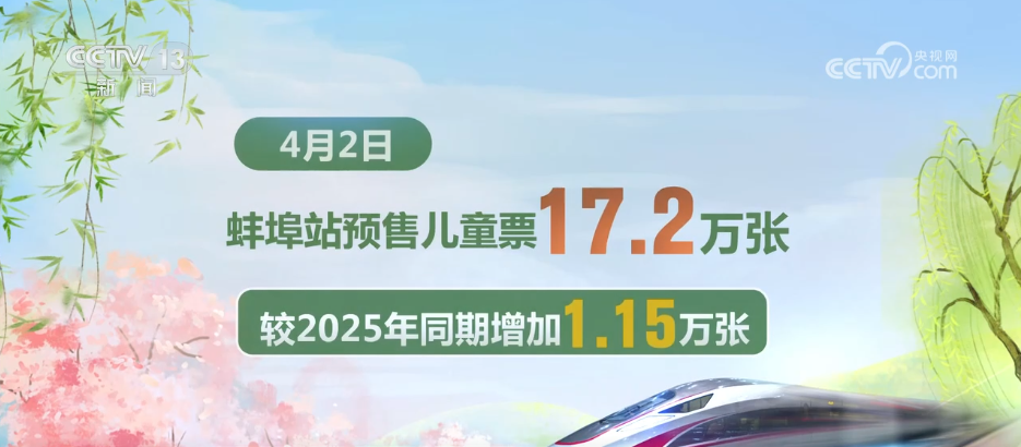 记者从铁路部门了解到,春假出行热度持续攀升,安徽多地铁路客流保持高位运行。其中,4月2日蚌埠站预售儿童票17.2万张,较2025年同期增加1.15万张;合肥直属站2日发送旅客约21.5万人次,其中儿童票预售1.65万张。