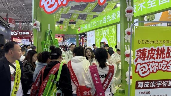 这场别开生面的挑战赛,凭借“低门槛、高互动、强体验”的特点,迅速点燃了现场热情。尽管 0.025cm 的“透光级”标准极具挑战,连从业多年的面点师傅也感叹“看似简单,实则对力度和技巧要求极高”,但大家的热情丝毫不减,展位前排起的长龙,成为展会上最具人气的互动打卡点。