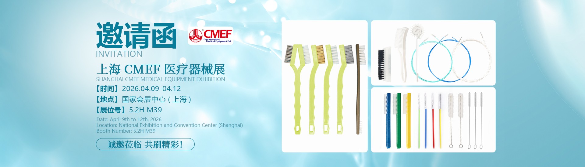 浦江潮涌,医路向新。第89届中国国际医疗器械博览会(CMEF)即将启幕。傲群刷业将携全系列生物医药医疗用刷重磅登场,与全球合作伙伴共探医用清洁与护理高质量发展新路径,以刷为媒,守护健康,共赴广阔山海。