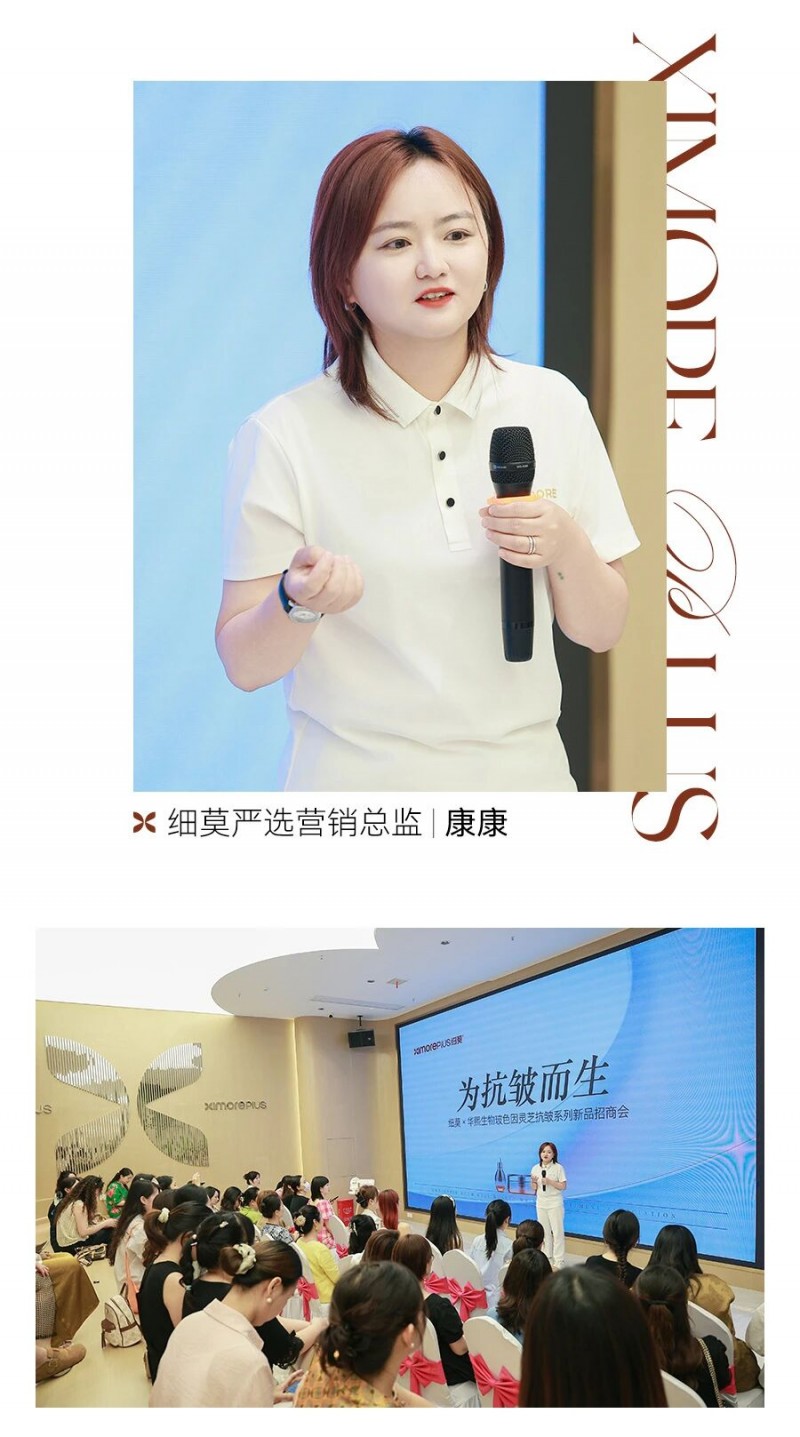 细莫严选营销总监康康在发布会上介绍了抗皱系列新品的营销战略。她表示,细莫将通过专业的营销运营体系,为市场拓展提供有力支撑,号召合作伙伴紧跟公司节奏,共同开拓市场,推动业绩持续提升。