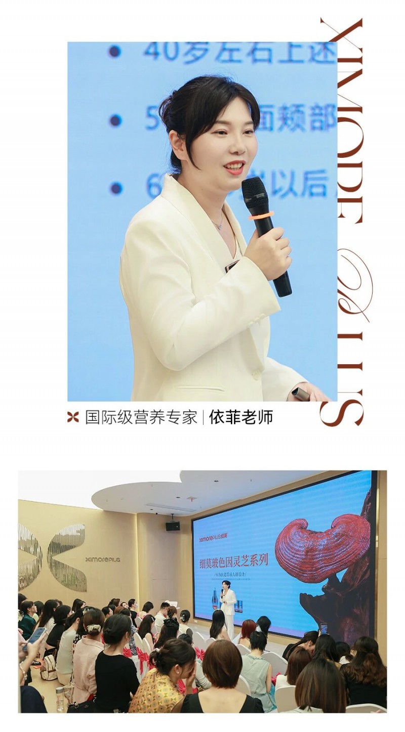 国际级营养专家依菲老师围绕“全龄抗衰”主题,深入解析了25+、35+、45+ 等年龄段女性的精准抗皱需求。她表示,细莫玻色因灵芝抗皱系列以科学配比为支撑,能够为消费者提供全龄抗衰护理方案。