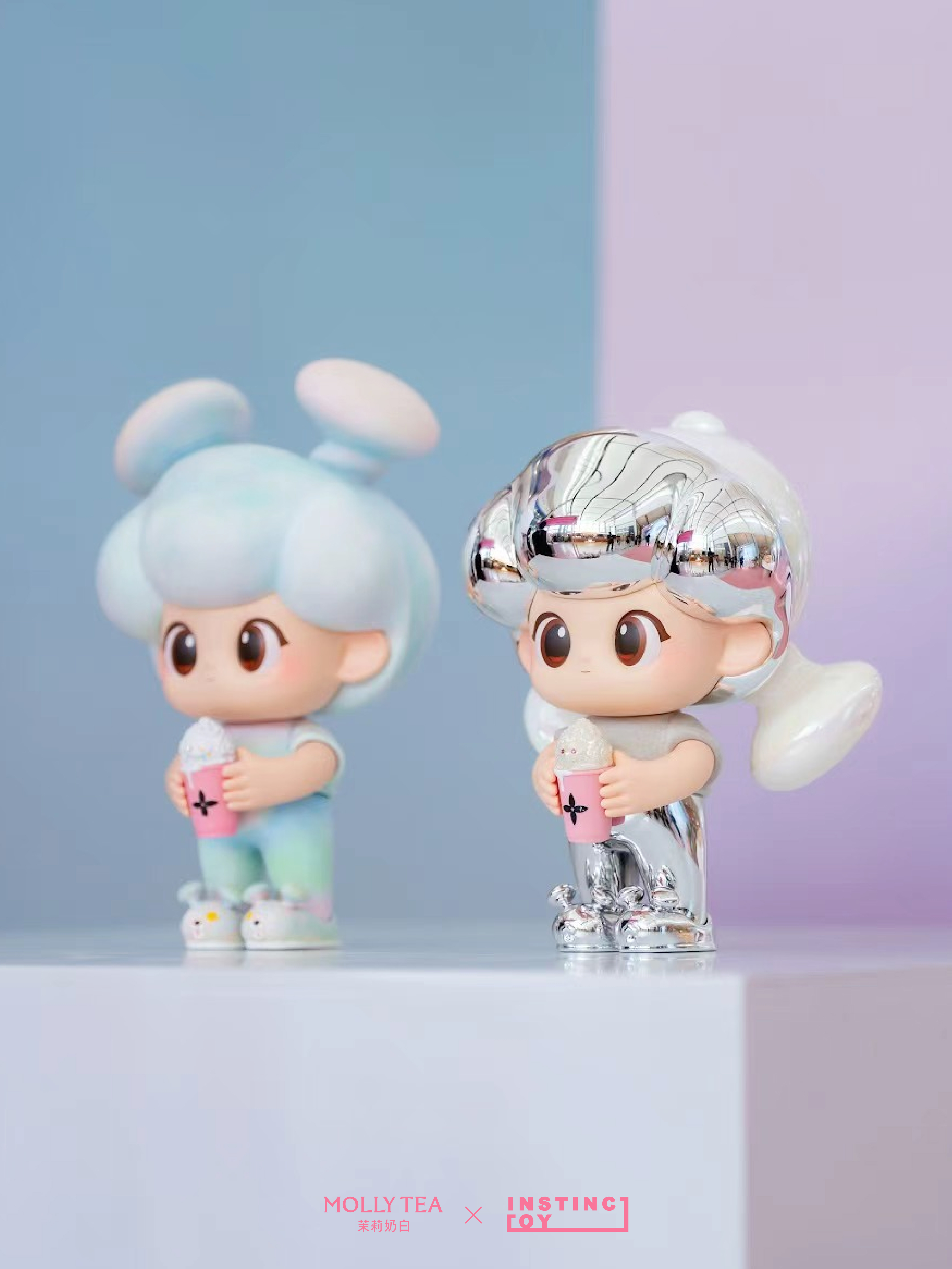 本次联名中,大久保将小茉莉IP形象与其个人艺术风格深度融合,把小茉莉天真俏皮的形象置放于“醒春梦乐园”的未来春日花园场景中,构建出一个融合自然、幻想与赛博元素的超现实乌托邦。大久保作为日本潮玩领军人物,以“可爱x怪诞”的矛盾美学著称,其创立的潮玩品牌INSTINCTOY兼具玩具亲和力与强烈的怪诞艺术感,在潮玩圈拥有高度辨识度和忠实粉丝群。他曾与Molly、Labubu、Dimoo等多个知名IP成功合作,具备强大的艺术表现力与市场号召力。此次联手推出的小茉莉大娃限量299体,为300%大小,分为银色与彩色两个版本。彩色款采用手工绘制工艺,确保每一件都独一无二,同时还加入夜光效果,增加了收藏性与趣味性;银色款的设计则以珠光白为主基调,描绘出一个异世界的摩登赛博花园。潮玩大娃款的小茉莉设计,突破了它以往平面变装的形式,在立体造型与质感上实现全面升级,延续可爱底色的同时,也将审美族群扩大,精准锚定潮玩圈与艺术消费的年轻用户。