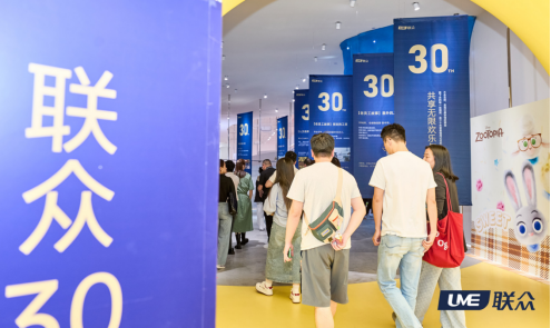 当晚,参会嘉宾还率先参观了联众文创园展厅内全新落成的「30周年时光漫展」,23幅深藏蓝底暖金字的垂挂画卷,将联众三十年间最值得铭记的人与故事娓娓道来——从1996年九人团队在中山小榄的启航,到迪士尼的历史性授权,再到联众速度与极客精神的代代传承。