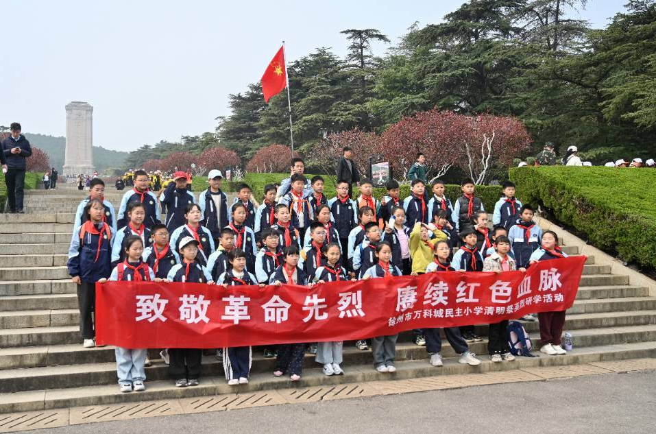 太行路小学四年级的学生们,来到淮海战役烈士纪念塔,上了一堂生动的“行走的课堂”。孩子们跟着讲解员,聆听革命先辈的战斗故事。在烈士英名墙前,大家不约而同放慢脚步,静静凝望。纪念馆内,孩子们仔细查看每一件文物、每一张老照片,得知不少烈士牺牲时年仅十七八岁,脸上都露出敬佩的神情。