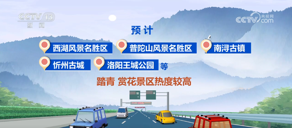 此外,清明假期,公众祭扫、踏青出游等活动叠加,公园、郊区旅游景点、陵园墓地等区域客流增加,周边公路交通压力增大。预计西湖风景名胜区、普陀山风景名胜区、南浔古镇、忻州古城、洛阳王城公园等踏青、赏花景区热度较高;上海松鹤园、佛山顺德飞鹅永久墓园、南宁四厦岭公墓、武汉玉笋山陵园等陵园周边可能会出现短时拥堵情况。
