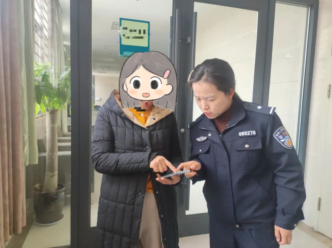 值班民警顾月霜第一时间拨打王女士电话,但无法接通,“骗子可能正在掌控手机”。顾月霜没有丝毫犹豫,立刻拨通王女士丈夫的电话核实情况,得知王女士此刻正在单位上班,她当即拿起办公桌上常备的回形针,与辅警李闯火速驱车前往。