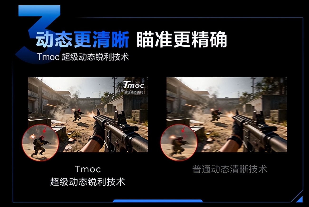 动态表现方面,27C3A Pro搭载Tmoc超级动态锐利技术,这是一套背光与液晶协同的技术方案,确保高速运动画面边缘不糊、拖影不留。配合OverDrive-Pro(OD Pro)液晶加速精控与MPRT-Plus双控矩阵背光技术,可实现0.2ms(MPRT)疾速响应,精准扫除运动模糊。同时,产品支持UHD 165Hz与FHD 320Hz双模超高频刷新率,用户可根据不同场景需求自由切换:在3A游戏中享受高分辨率带来的沉浸画质,在FPS等竞技游戏中体验高刷新率带来的操作跟手度。