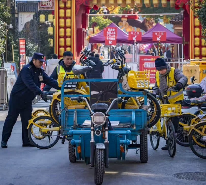 面对核心区车辆堆积的风险,街道迅速向上级报送需求。在区级主管部门的统一调度下,各单车企业在景区人流高峰前清空了重点区域堆积车辆,每日还派驻专人进行定点整理。街道则组织了社会清运力量,还协调中华中学、夫子庙小学等周边学校的操场,临时辟为单车“中转站”……一套“组合拳”打下来,核心区单车堆积难题迎刃而解,春假期间,辖区主要道路畅通无阻。