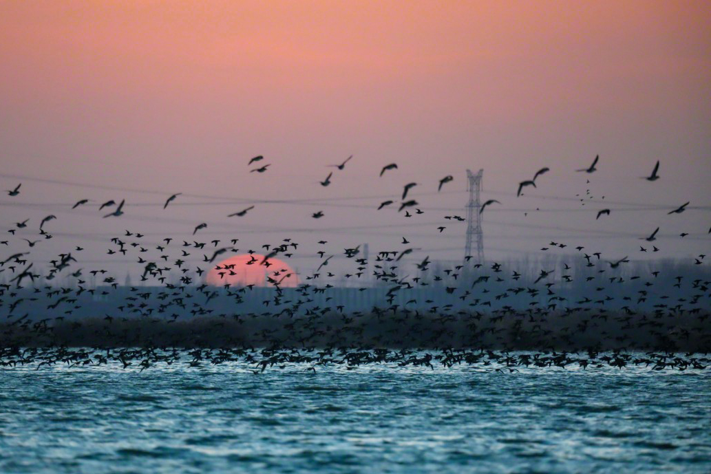 随着一系列保护和修复措施持续推进,这片区域的生态环境逐步改善。目前,泗洪每年可观测到包括近20种国家一级保护动物,鸟类种类已增加至240种左右,鱼类种类从48种恢复至63种,资源丰度较2020年增长约217%,完整的湿地食物链逐步形成。总数更是从20余万只跃升至80余万只。