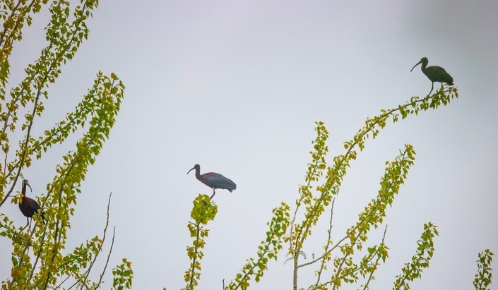 工作人员告诉记者,由于彩鹮的羽毛在阳光折射下呈现华丽的金属光泽,素有“湿地彩虹”之美誉,已被列入《世界自然保护联盟濒危物种红色名录》。此前曾一度被认为在中国野外绝迹。这一发现标志着保护区生物多样性保护取得新成效。