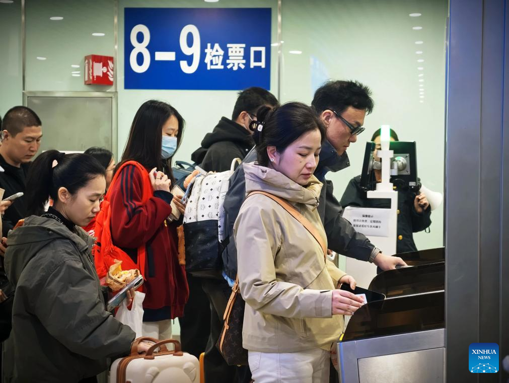 Passengers check in at Beijing South Railway Station in Beijing, capital of China, on April 6, 2026. An estimated 845.38 million passenger trips were made across China during the three-day Qingming Festival holiday, up 6 percent year on year, transportation authorities said on Monday.