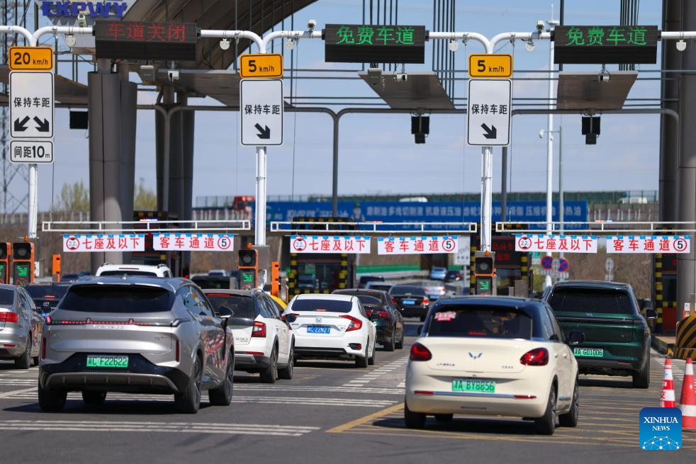 Vehicles pass through a toll station of an expressway in north China's Tianjin, April 6, 2026. An estimated 778.45 million road trips were made across China during the three-day Qingming Festival holiday, rising 5.8 percent from the same period last year, according to the Ministry of Transport. (Xinhua/Sun Fanyue)