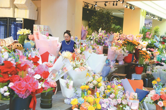 王晶菁加上花店老板娘戚华平的微信,约定有新品就拍照给她。戚华平笑着打开自己的微信通讯录——9900多位好友,至少七成是顾客。“有时候真搞不清谁是谁。他们看到喜欢的,会发信息来,或是上门购买,或是由店里送。”戚华平的花店有100多平方米,店外设有外摆区,雇有9名员工,但忙起来她依然“脚不着地”。