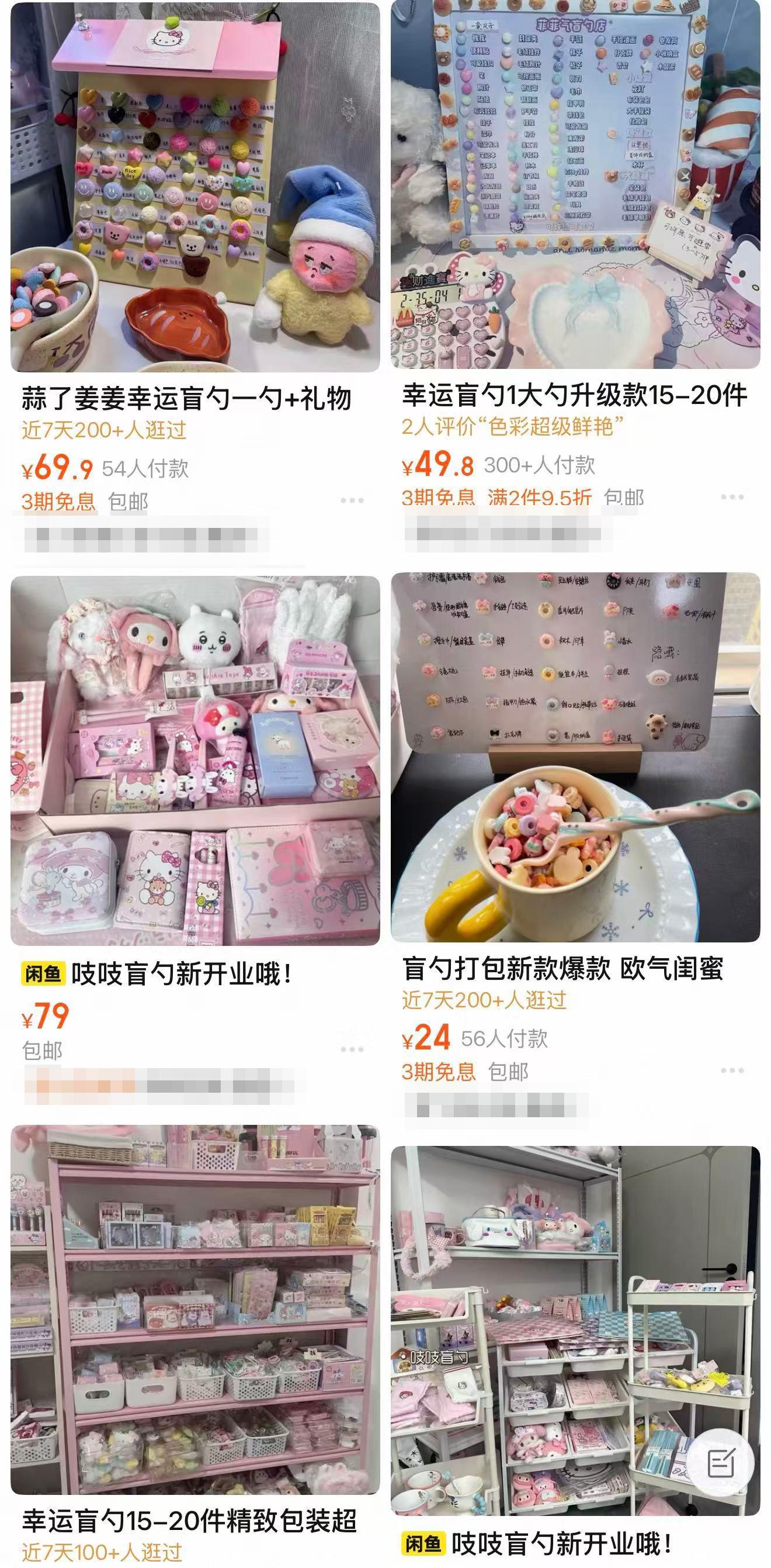 记者通过一些商家在社交媒体平台上传的视频发现,“盲勺”随机舀出的物件多是可爱精巧的小商品,比如橡皮圈、小玩偶、卡通贴纸、小文具等。卖家多集中在青少年或者年轻人聚集的社交平台。同时,记者在某社交平台多个“盲勺”商品链接下的留言区看到,多位消费者对商品价格提出疑问。