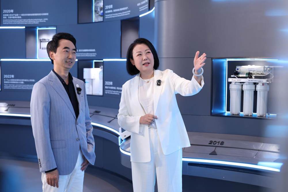 走访过程中,刘润先后参观了安吉尔品牌展厅及标杆门店,深入了解安吉尔的发展脉络与业务布局。安吉尔作为一家深耕净水行业38年的企业,先后引领行业迈入1.0末端长效净水时代、2.0全厨大水量净水时代、3.0全屋大水量净水时代,持续引领行业的迭代发展。在展厅内,孔那为刘润介绍了末端净水器A6、全厨大水量净水器A7系列以及空间大师系列全屋净水,清晰呈现出安吉尔三代革新产品的演进路径。