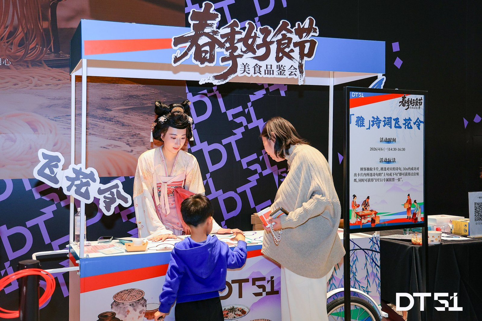 春和景明,食韵悠长。4月6日,DT51商场以“春味雅集”为主题,在7层精心举办了一场兼具趣味性与沉浸式体验的美食品鉴会,吸引了众多会员及美食爱好者到场参与,在舌尖盛宴中感受春日气息,在互动乐趣中解锁品质生活新体验。本次活动将美食品鉴与文化互动深度融合,为现场嘉宾呈现了一场横跨古今、融汇中西的味觉与精神双重盛宴。