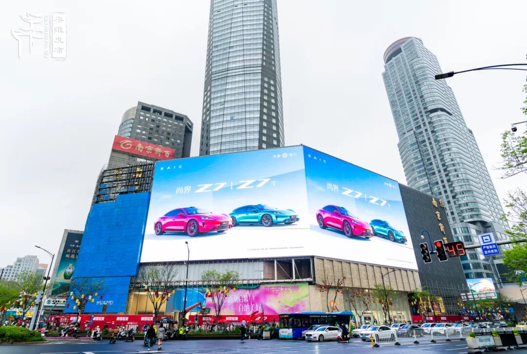 商场主入口上方,超大荧屏宛如巨型银镜,“俯瞰”车流滚滚的新街口广场;
