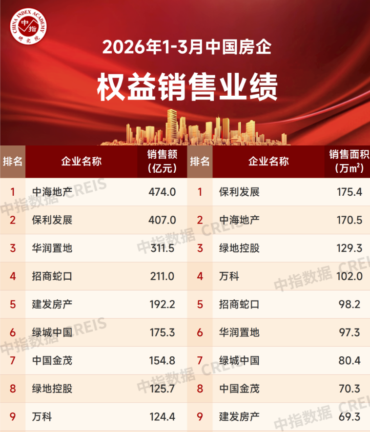 2026年一季度,房地产市场呈现筑底企稳态势。据中指研究院数据显示,1-3月TOP100房企销售总额同比降幅较1-2月收窄3.7个百分点,核心城市市场活跃度提升,改善型需求持续释放,行业正加速迈向品质深耕、稳健经营的高质量发展新阶段。在市场结构性回暖进程中,建发房产凭借稳健运营与强劲产品力表现突出,全口径销售额位列全国第6位,权益销售额稳居全国第5位,以头部排名彰显行业领先地位与市场高度认可。