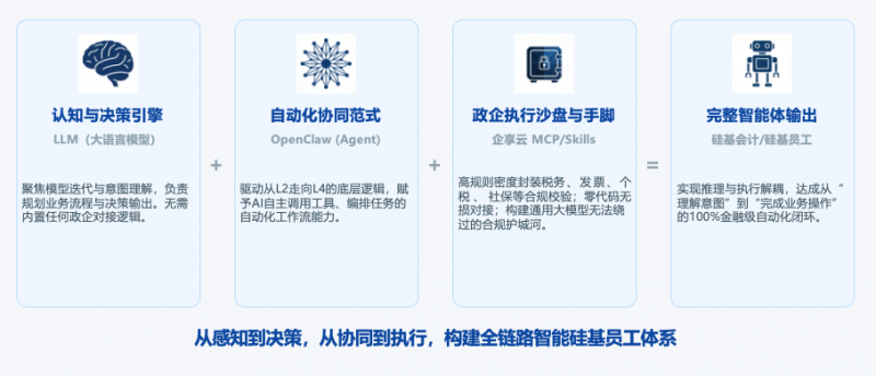 通过这种解耦,大模型无需内置任何政企对接逻辑,只需发出符合Skills规范的调用指令,即可获得确定性的执行结果。目前已联合落地多个垂类数字员工场景,包括硅基会计、硅基报关员、硅基人事专员等,实现了从“理解意图”到“完成业务操作”的全链路自动化。
