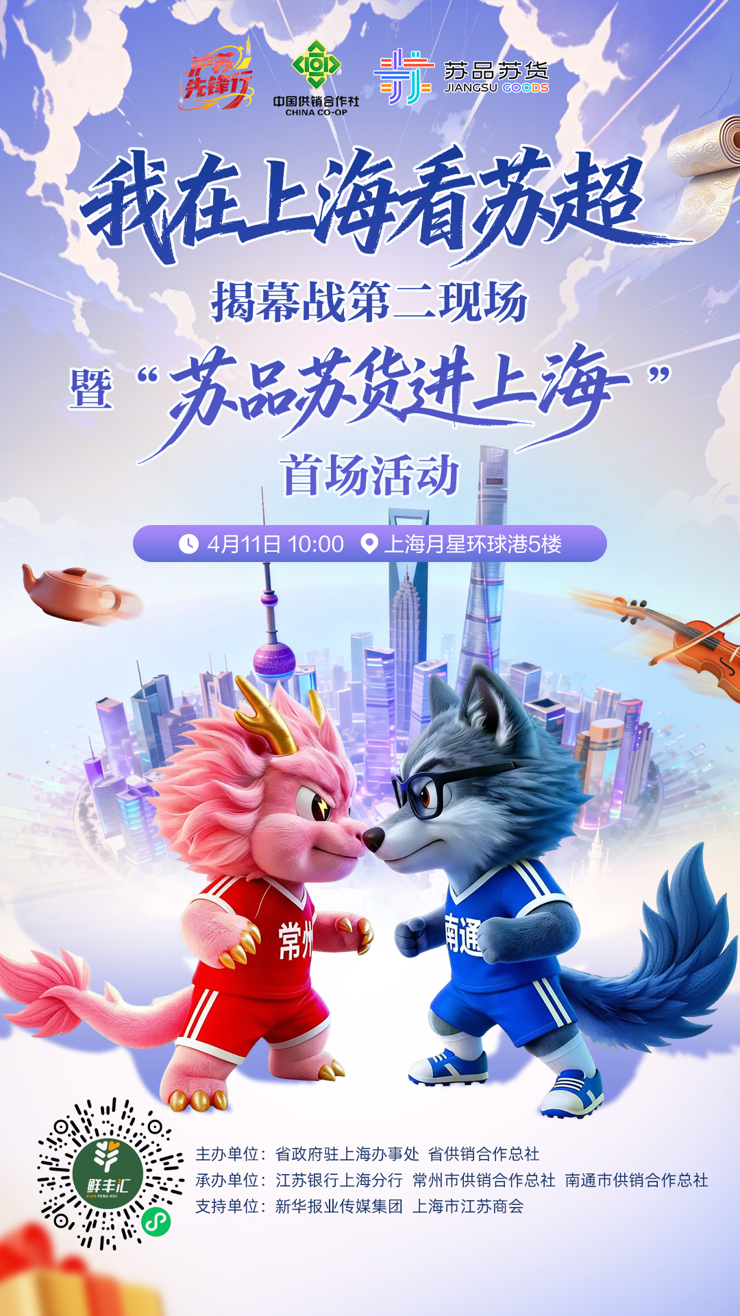 为了让更多上海市民提前感受江苏风物魅力,省供销合作社“鲜丰汇”平台特别上线苏超专属专区。即日起,扫描海报上的二维码,即可提前浏览采购优中选优的苏品苏货。省供销合作总社相关负责人透露,“鲜丰汇”苏超专区将常态化集中展销江苏13个设区市的特色农产品、地理标志产品等名优农产品,让观众在为家乡球队加油的同时,零距离感受江苏发展成果,一站式采购来自江苏的优质好物。