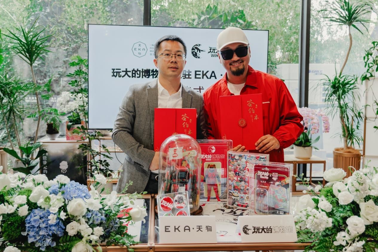2026 年 4 月 9 日,上海浦东金桥 ——玩大的博物馆与EKA 天物正式签署入驻合作协议,宣告国内头部潮玩文化 IP 正式落户这座由百年工业遗存焕新而成的都市人文美学街区。签约仪式现场,玩大的博物馆馆长童话先生与嘉韵集团执行总裁陈鹏年先生共同出席,携手推动工业遗产与潮玩文化的跨界融合,为上海文创产业注入全新活力。