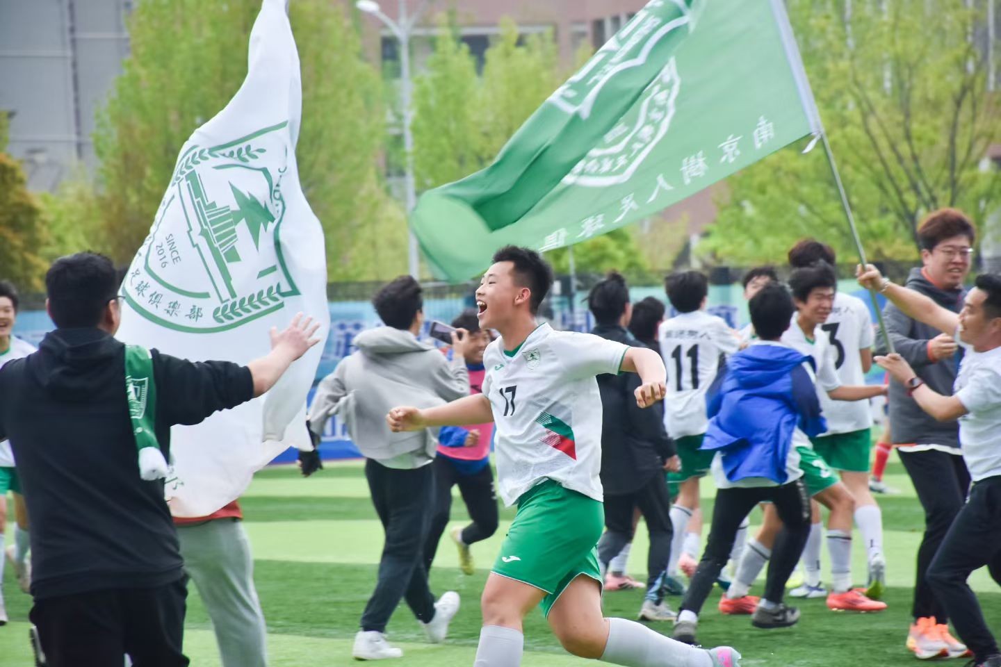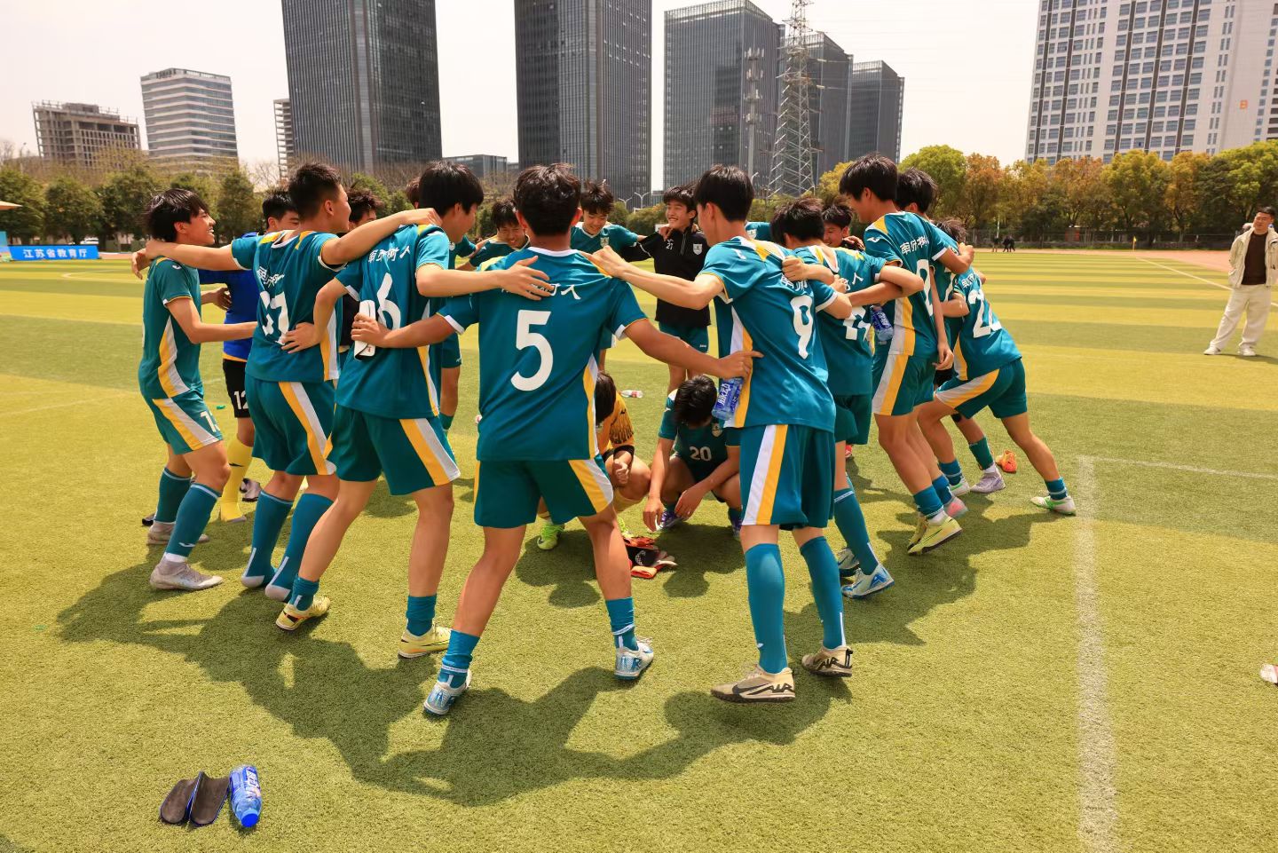 夺冠瞬间,队员、教练、老师与家长相拥欢呼、喜极而泣,现场掌声、欢呼声此起彼伏,定格下属于南京校园足球的荣耀时刻。