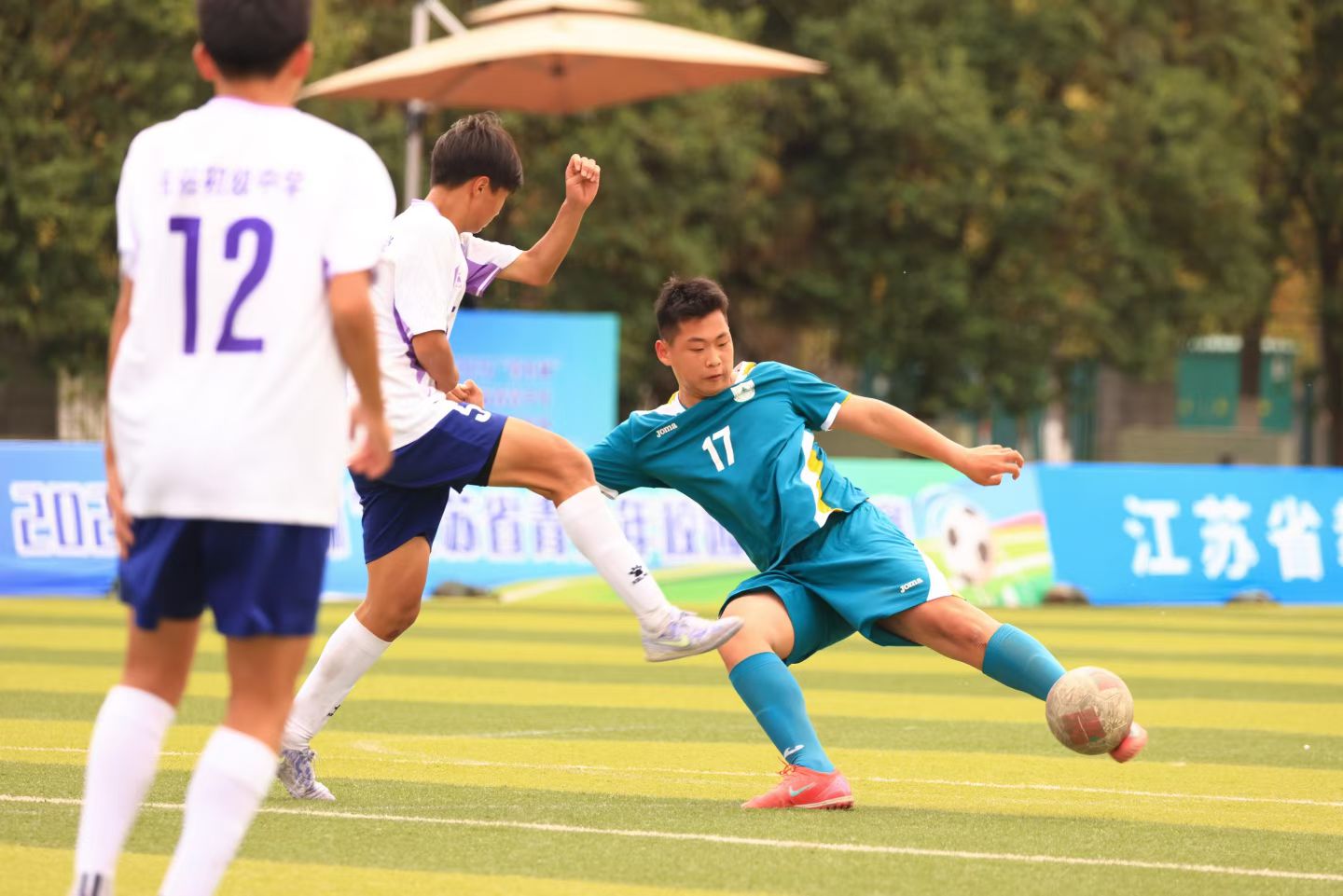 对阵盐城市冠军盐南高新区伍佑初级中学,双方攻防节奏拉满,展现出极高的竞技水平,常规时间0比0战平。点球大战中,南师树人队员沉着冷静、精准发力,5比3战胜对手,顺利晋级决赛。