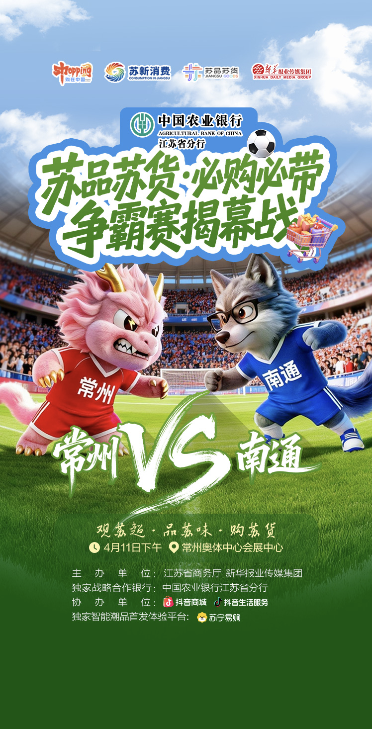 由江苏省商务厅、新华报业传媒集团主办,中国农业银行江苏省分行作为独家战略合作银行的“苏品苏货・必购必带”争霸赛,将借“苏超”东风,以“文体联动”创新模式,点燃全省消费热潮。赛事由抖音商城、抖音生活服务协办,苏宁易购为独家智能潮品首发体验平台,全程深度绑定“苏超”赛程,通过乡镇海选、市县PK、省级决选,层层筛选、全域联动。衣、食、居、行、智、特六大赛道广纳全省好物,从舌尖烟火到科技潮物,从乡野间的一镇一品到产业带的硬核智造,这场横跨全年的好物盛宴,不仅是城市间的同台竞技,更是“江苏制造+江苏原产+江苏文化”的集中亮相。